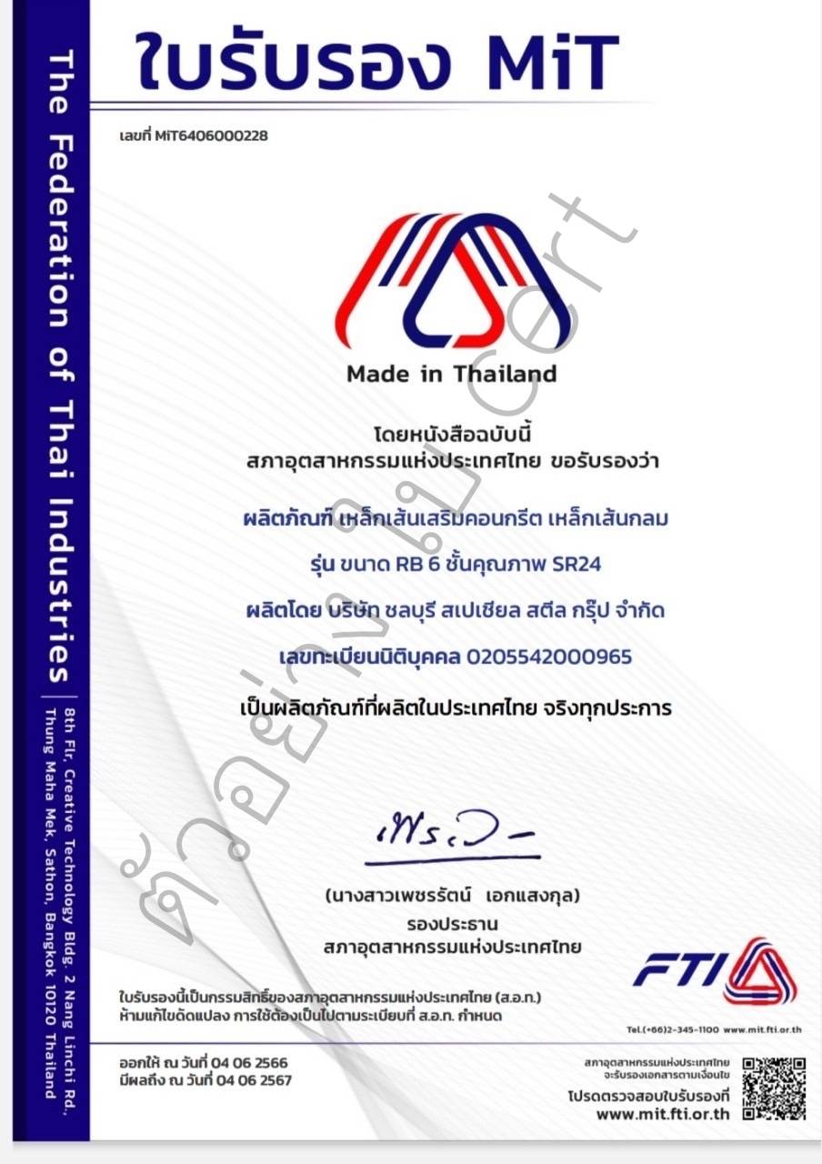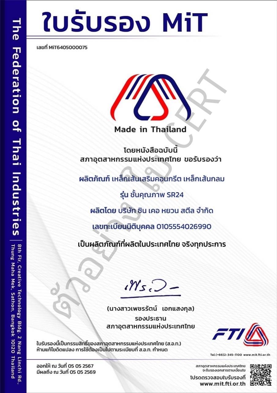 | มาตรฐานผลิตภัณฑ์ : มอก.20-2559 ชั้นคุณภาพ SR24 |